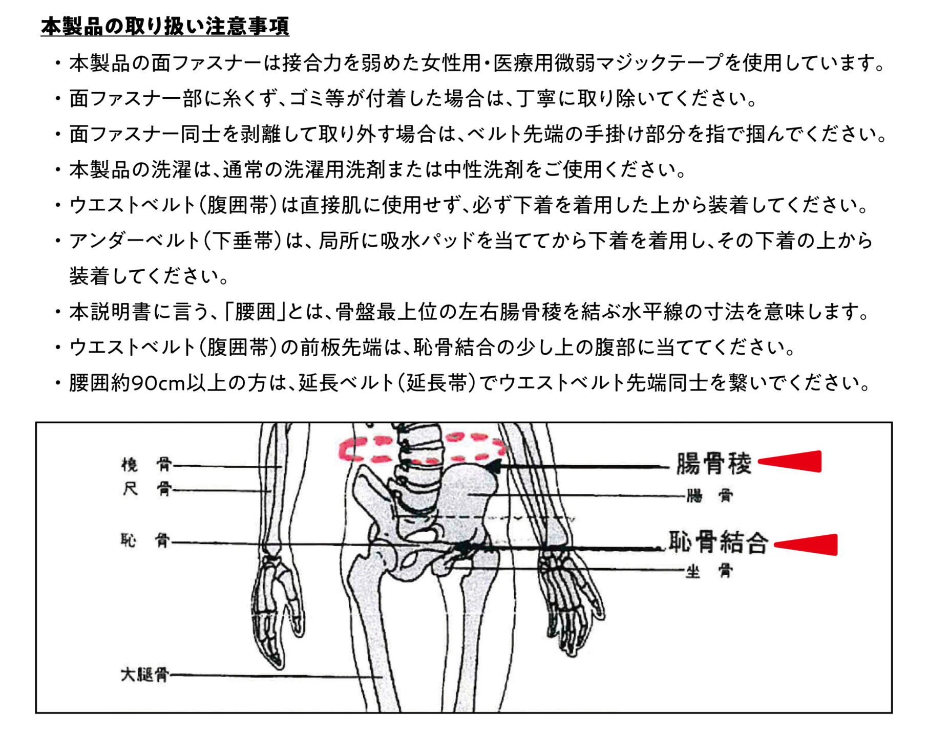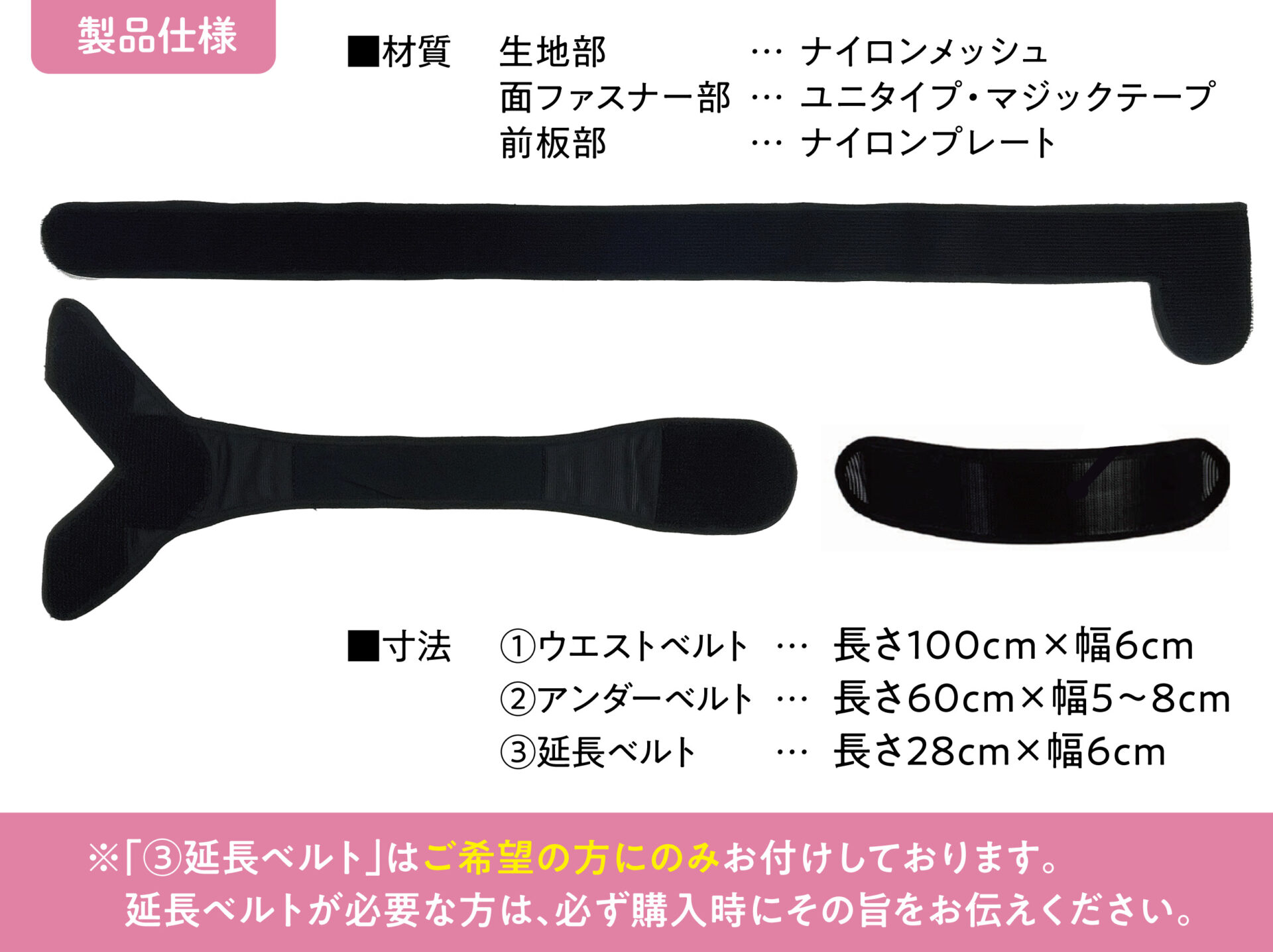 ※腹囲90cm以上の方は、ウエストベルトに加えて延長ベルトもご使用ください。